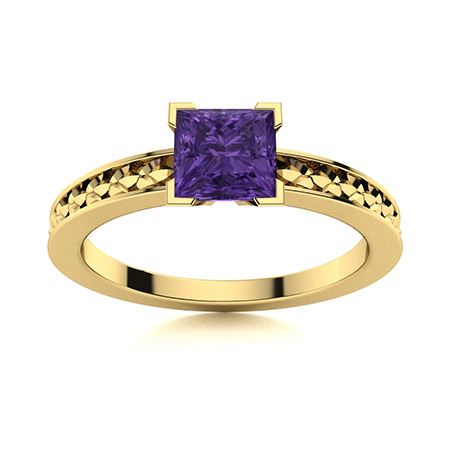 Natural 1.09 CTW Amethyst Solitaire Ring 18K Yellow Gold