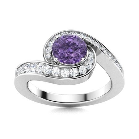 Natural 1.09 CTW Iolite & Diamond Engagement Ring 14K White Gold