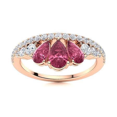 Natural 1.10 CTW Tourmaline & Diamond Engagement Ring 18K Rose Gold