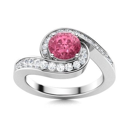 Natural 1.10 CTW Tourmaline & Diamond Engagement Ring 18K White Gold