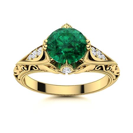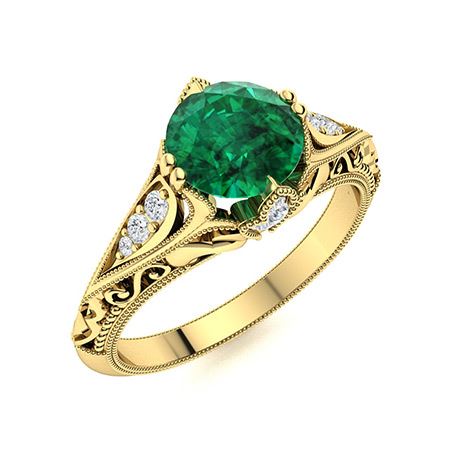 Natural 1.14 CTW Emerald & Diamond Engagement Ring 18K Yellow Gold