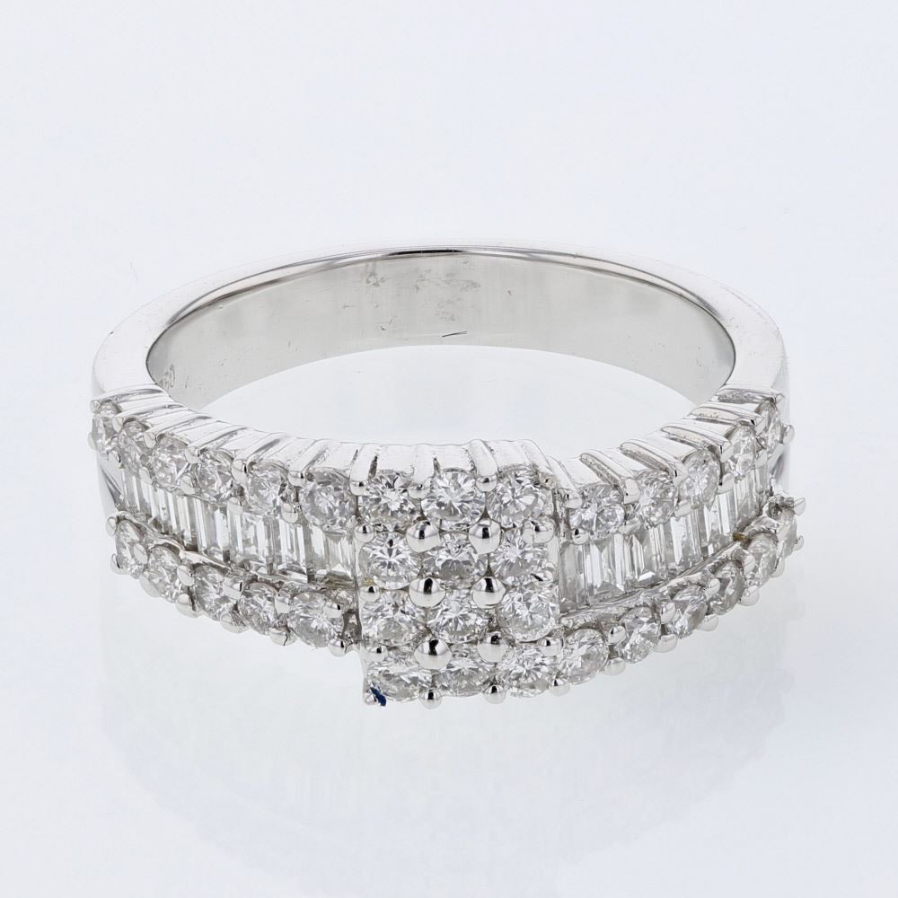 REF-155F7M ---- Natural 1.15 CTW Diamond & Baguette Ring 18K White Gold
