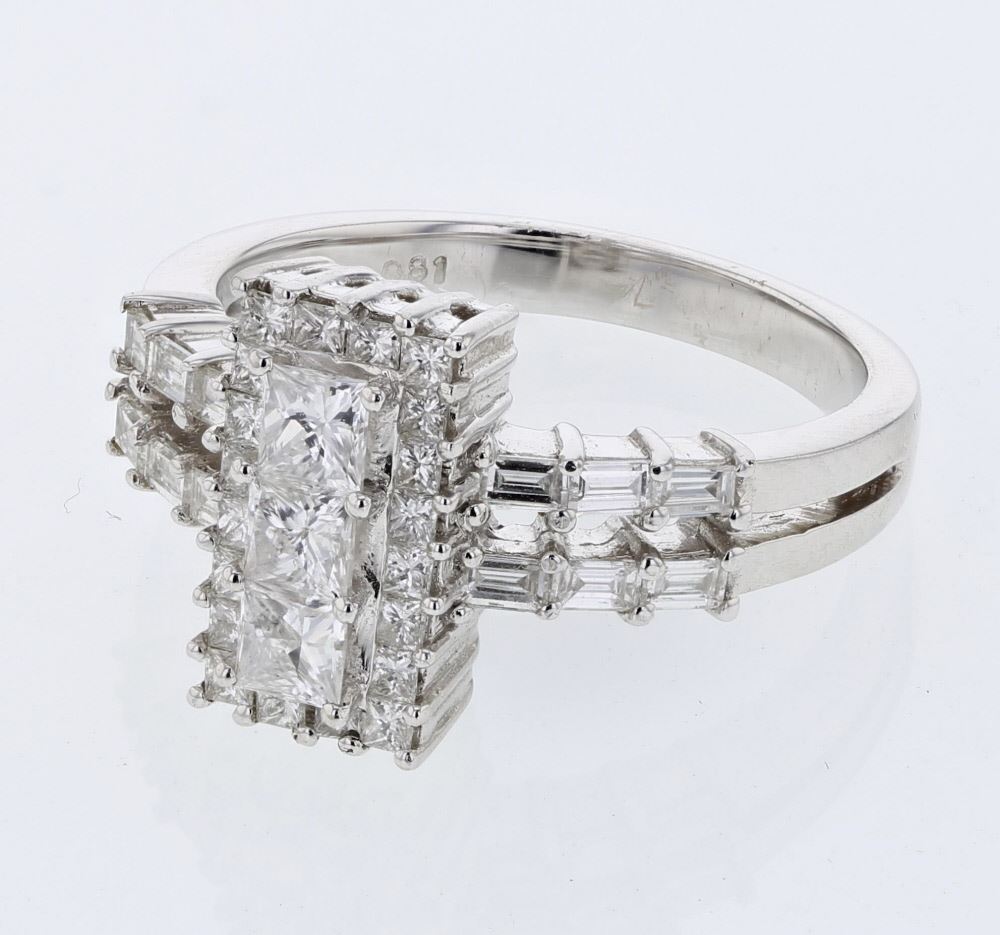 REF-167N4Y ---- Natural 1.15 CTW Princess Diamond & Baguette Ring 18K White Gold