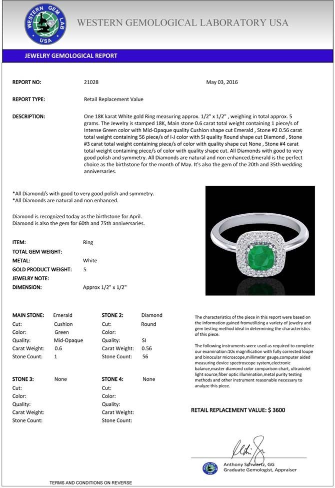 Mid-Opaque quality Cushion shape cut Emerald , Stone #2 0.56 carat total weight containing 56 piece/s of I-J color with SI quality