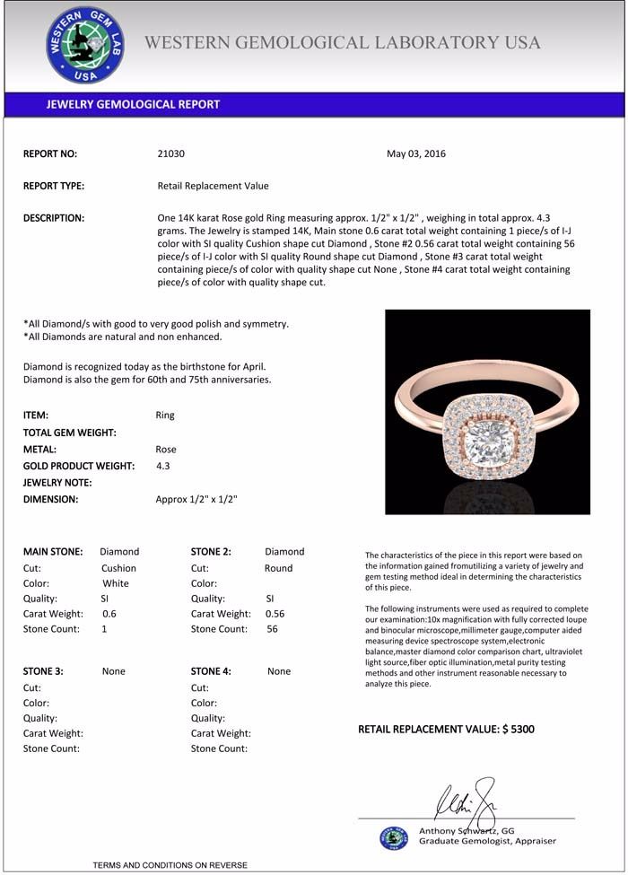total approx. 4.3 grams. The Jewelry is stamped 14K, Main stone 0.6 carat total weight containing 1 piece/s of I-J color with