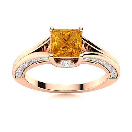 Natural 1.17 CTW Citrine & Diamond Engagement Ring 18K Rose Gold