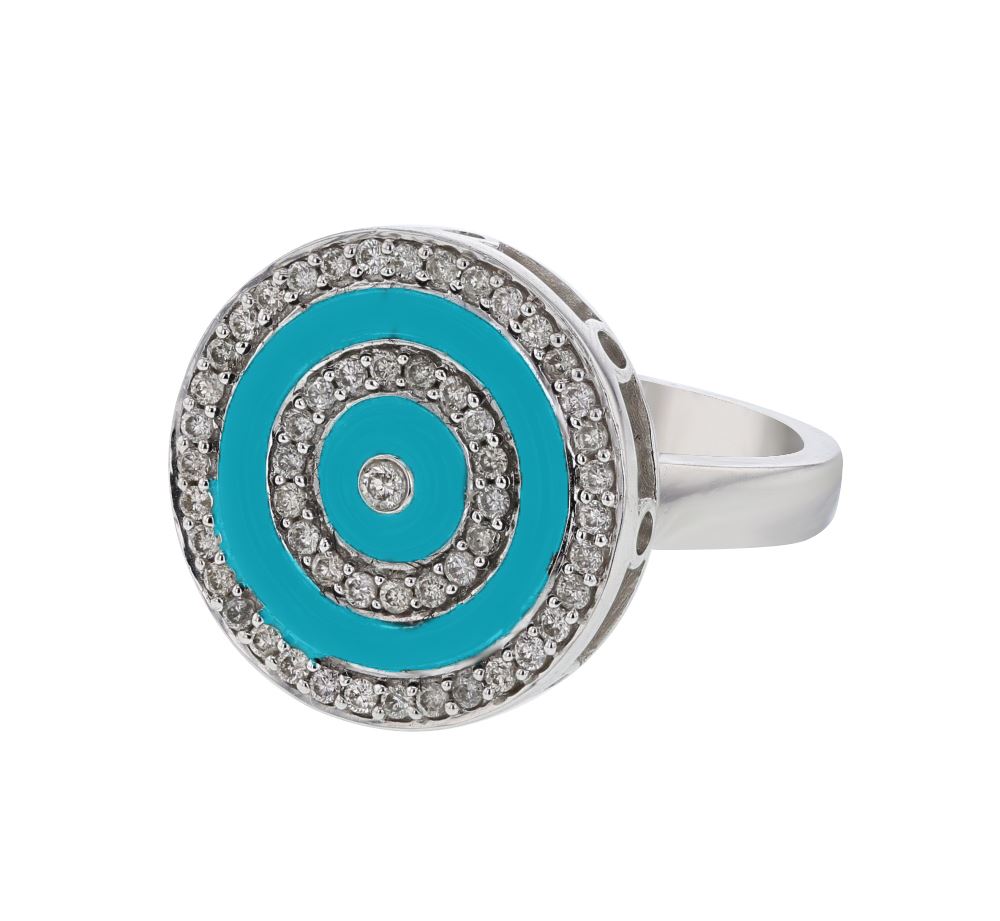 REF-93F6M ---- Natural 1.17 CTW Turquoise & Diamond Ring W=16MM 14K Gold