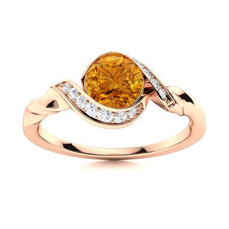 Natural 1.18 CTW Citrine & Diamond Engagement Ring 14K Rose Gold