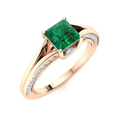 Natural 1.18 CTW Emerald & Diamond Engagement Ring 14K Rose Gold