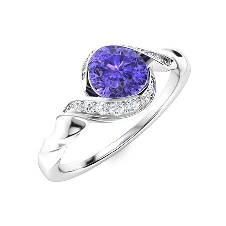 Natural 1.18 CTW Tanzanite & Diamond Engagement Ring 14K White Gold