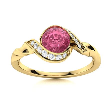 Natural 1.18 CTW Tourmaline & Diamond Engagement Ring 14K Yellow Gold
