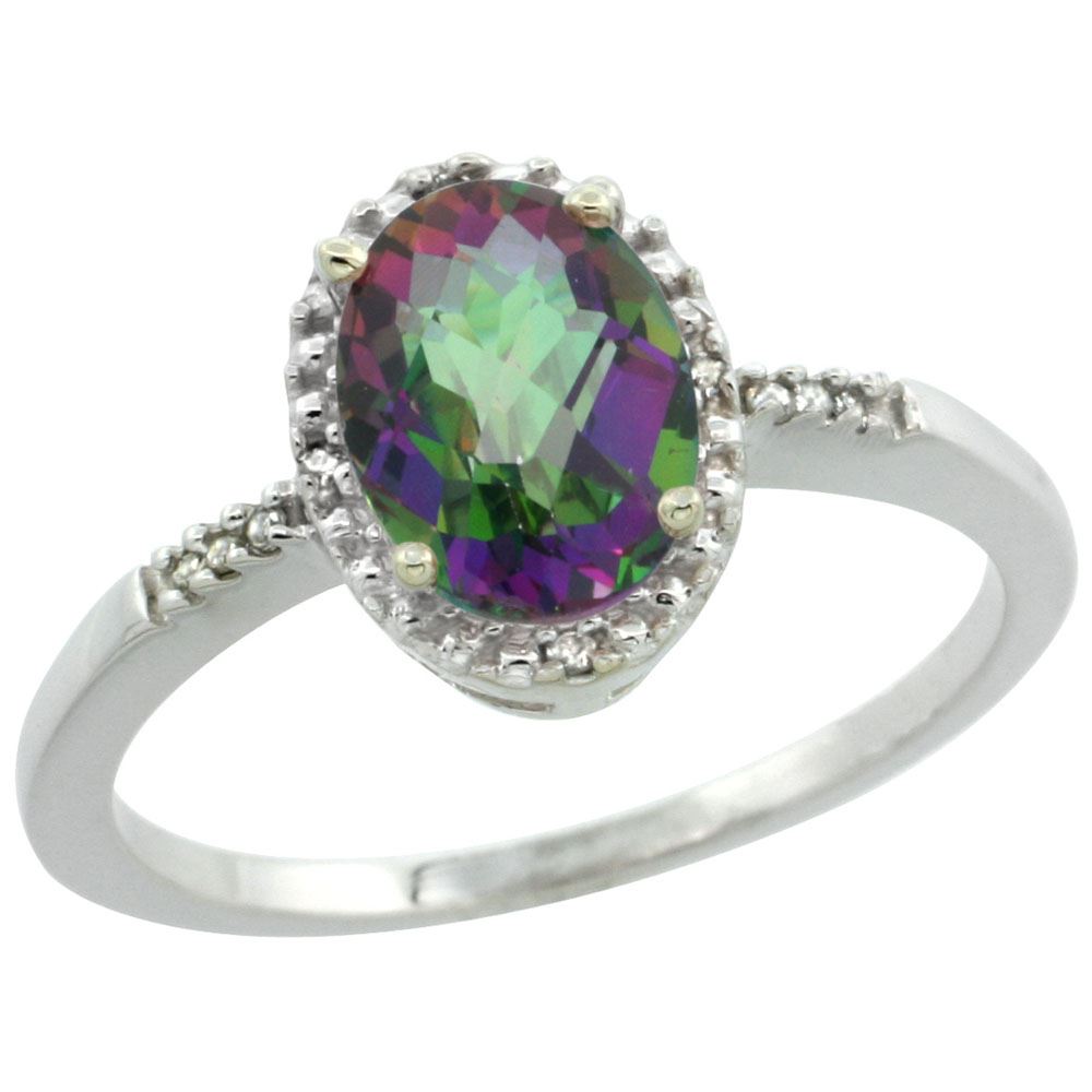 REF-23R2Z ---- SKU:SC-CW408113 ---- Manufacturer's Suggested Retail Price - $700.00 ---- Natural 1.2 ctw Mystic-topaz & Diamond Engagement Ring 14K White Gold