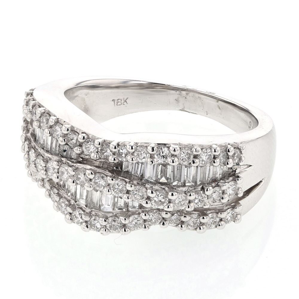 REF-197T3X ---- Natural 1.20 CTW Diamond & Baguette Ring 18K White Gold