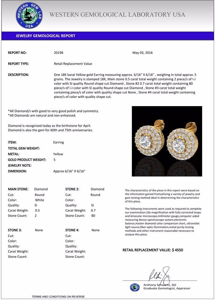 total approx. 5 grams. The Jewelry is stamped 18K, Main stone 0.5 carat total weight containing 2 piece/s of I-J color with