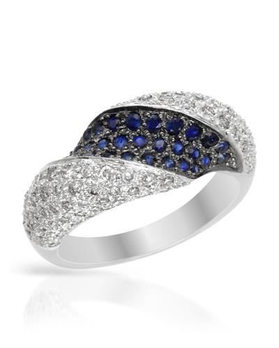 REF-101R7K ---- Natural 1.20 CTW Sapphire & Diamond Ring 14K White Gold