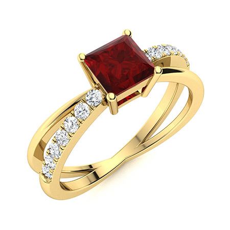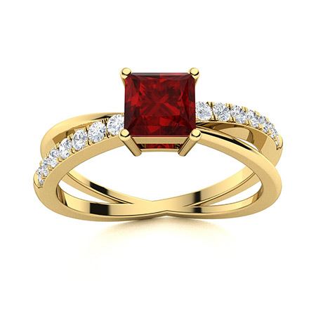 Natural 1.21 CTW Garnet & Diamond Engagement Ring 14K Yellow Gold