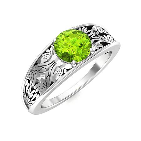 Natural 1.21 CTW Peridot Solitaire Ring 14K White Gold