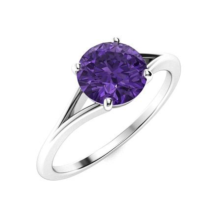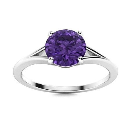 Natural 1.22 CTW Amethyst Solitaire Ring 18K White Gold