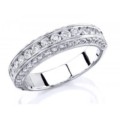 Natural 1.22 CTW Designer Round Cut Channel Set & Pave Diamond Wedding Band 18KT White Gold