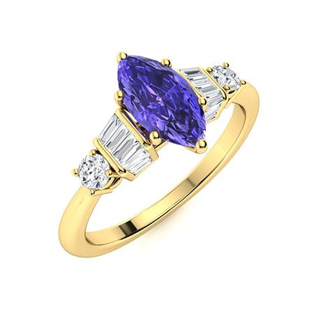 Natural 1.23 CTW Tanzanite & Diamond Engagement Ring 14K Yellow Gold