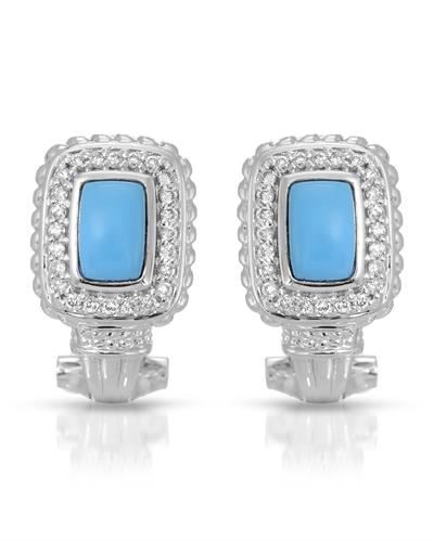 REF-74X7T ---- Natural 1.23 CTW Turquoise & Diamond Earrings 14K White Gold