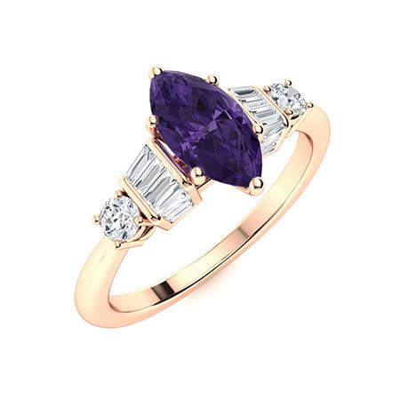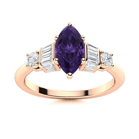 Natural 1.24 CTW Amethyst & Diamond Engagement Ring 18K Rose Gold