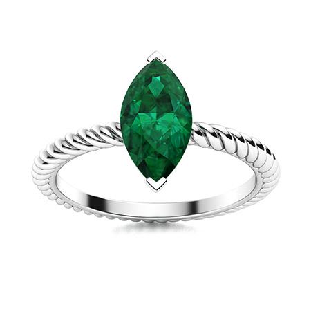 Natural 1.24 CTW Emerald Solitaire Ring 14K White Gold