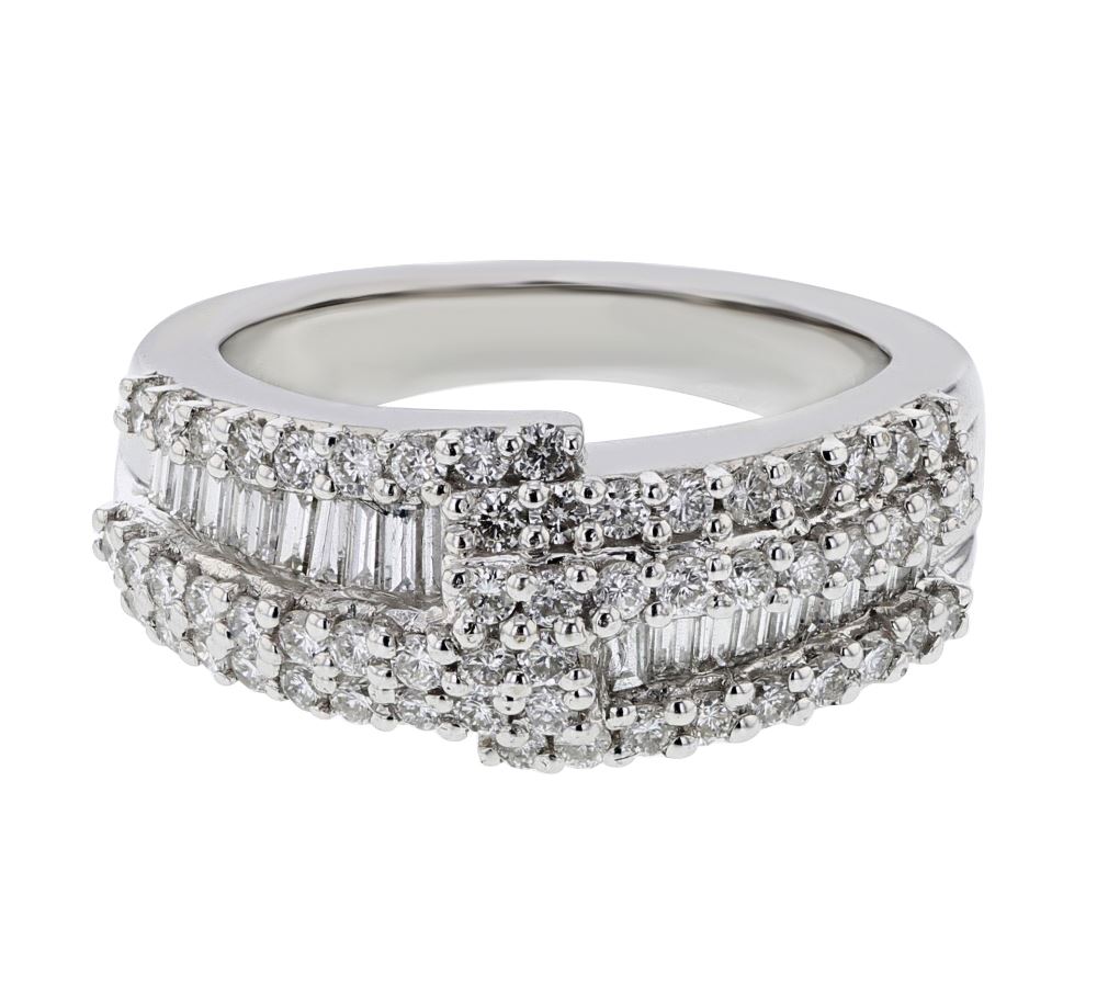 REF-185M4F ---- Natural 1.26 CTW Diamond & Baguette Ring 14K White Gold