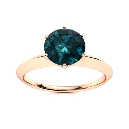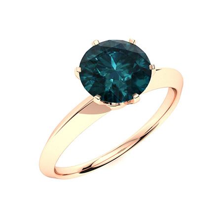 Natural 1.27 CTW Blue Diamond Solitaire Ring 18K Rose Gold