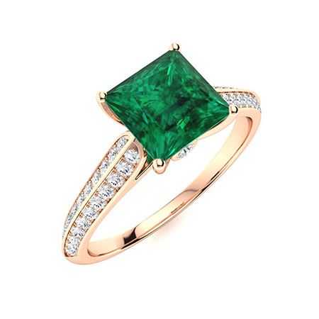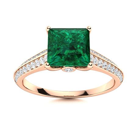 Natural 1.27 CTW Emerald & Diamond Engagement Ring 18K Rose Gold