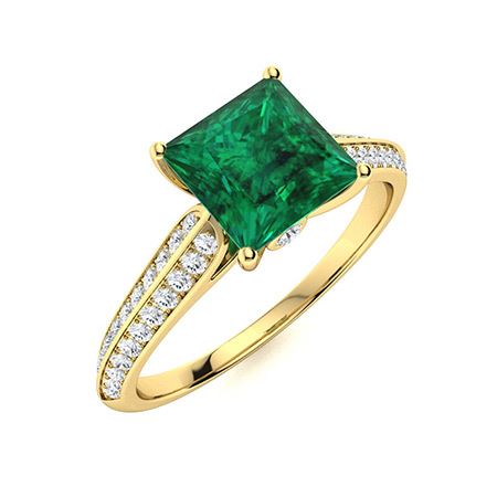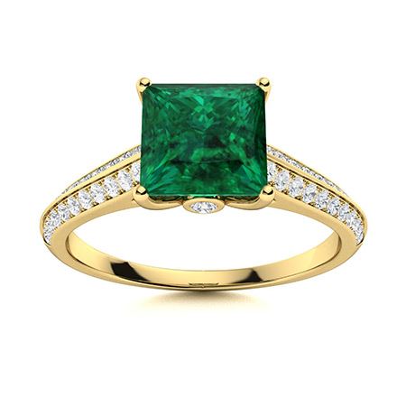 Natural 1.27 CTW Emerald & Diamond Engagement Ring 18K Yellow Gold