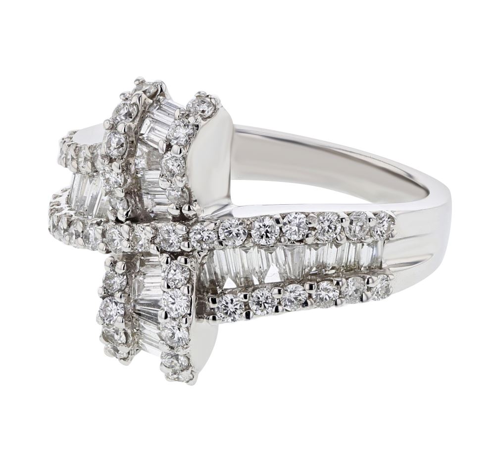 REF-181T8X ---- Natural 1.29 CTW Diamond & Baguette Ring 18K White Gold