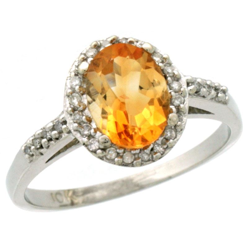REF-32A2V ---- SKU:SC-CW409137 ---- Manufacturer's Suggested Retail Price - $1000.00 ---- Natural 1.3 ctw Citrine & Diamond Engagement Ring 14K White Gold