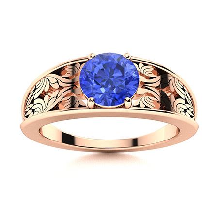 Natural 1.31 CTW Ceylon Sapphire Solitaire Ring 14K Rose Gold