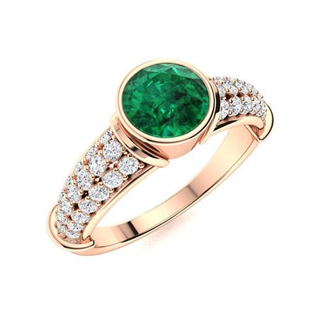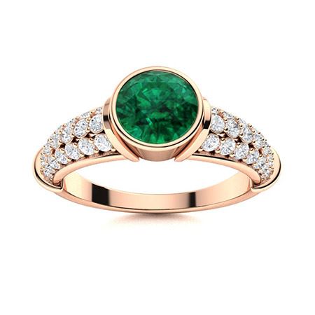 Natural 1.32 CTW Emerald & Diamond Engagement Ring 18K Rose Gold