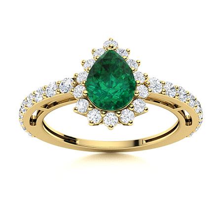 Natural 1.37 CTW Emerald & Diamond Engagement Ring 18K Yellow Gold