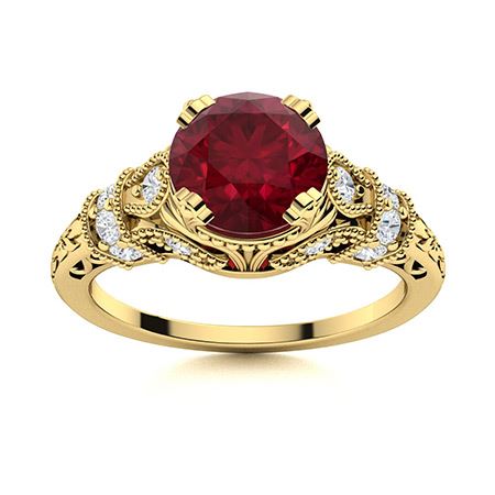 Natural 1.37 CTW Ruby & Diamond Engagement Ring 18K Yellow Gold