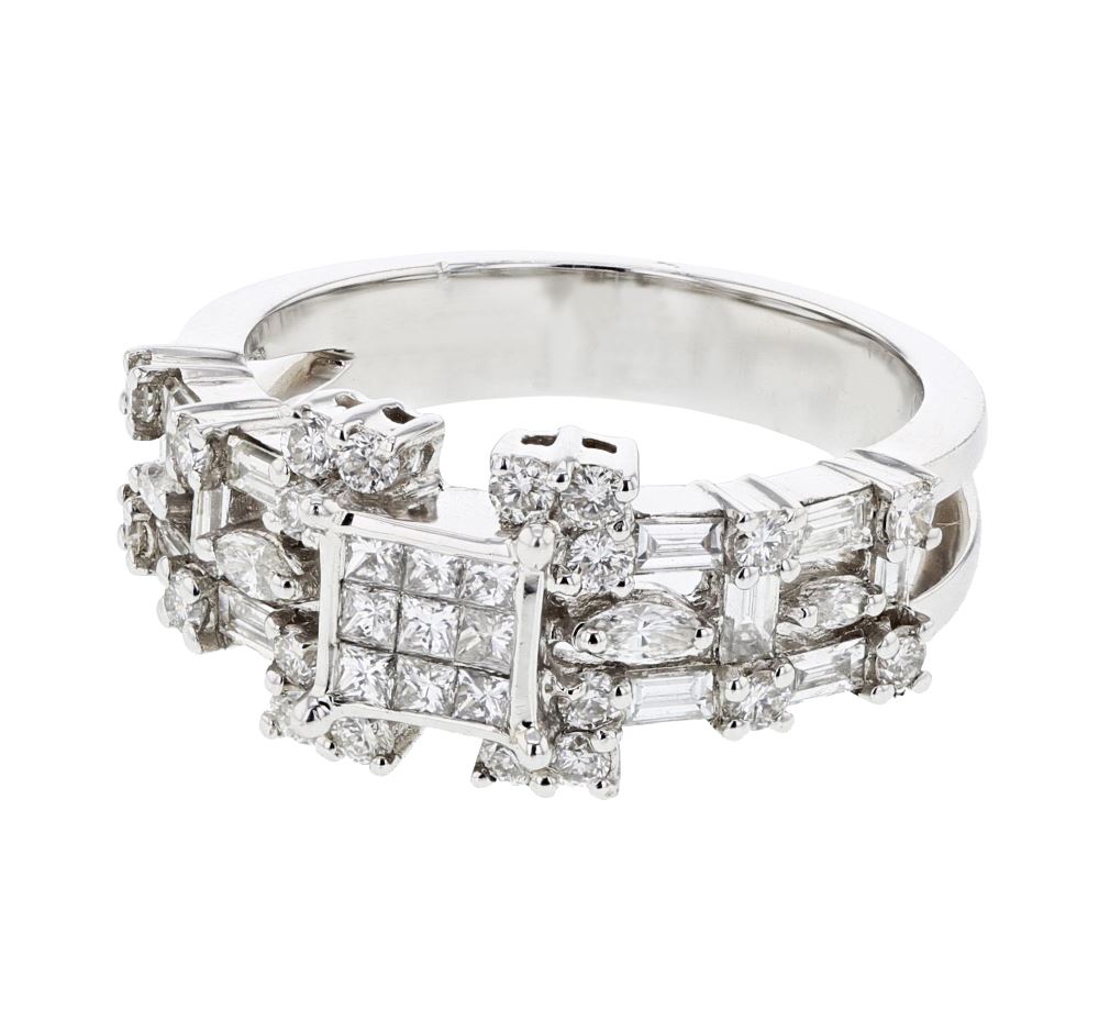 REF-176T4X ---- Natural 1.38 CTW Diamond & Baguette Ring 14K White Gold