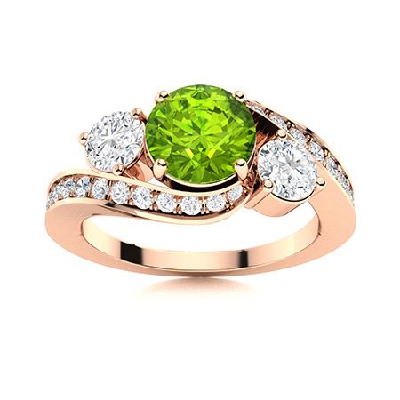 Natural 1.42 CTW Peridot & Diamond Engagement Ring 18K Rose Gold