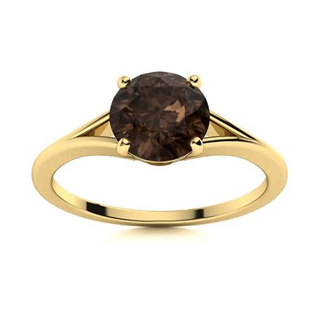 Natural 1.42 CTW Smoky Quartz Solitaire Ring 18K Yellow Gold