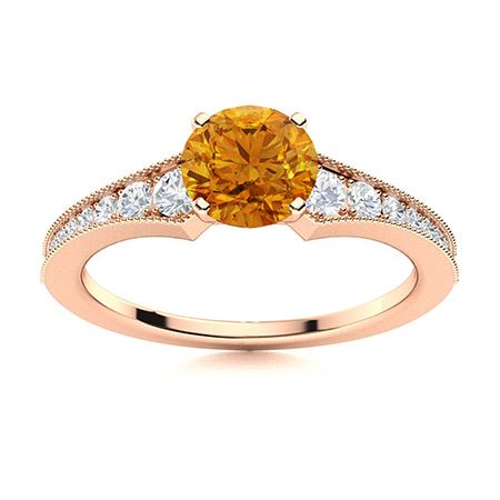 Natural 1.45 CTW Citrine & Diamond Engagement Ring 14K Rose Gold