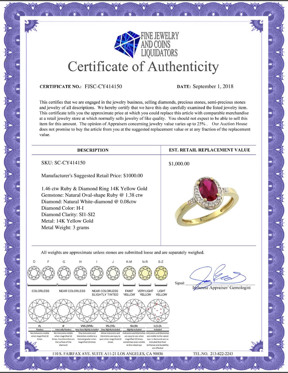 All Gia and EGL Diamonds are subject to availability due to consignors’ terms with us.