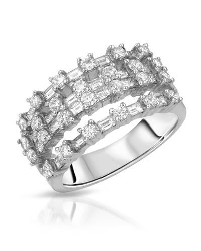 REF-222M3F ---- Natural 1.49 CTW Diamond & Baguette Ring 18K White Gold