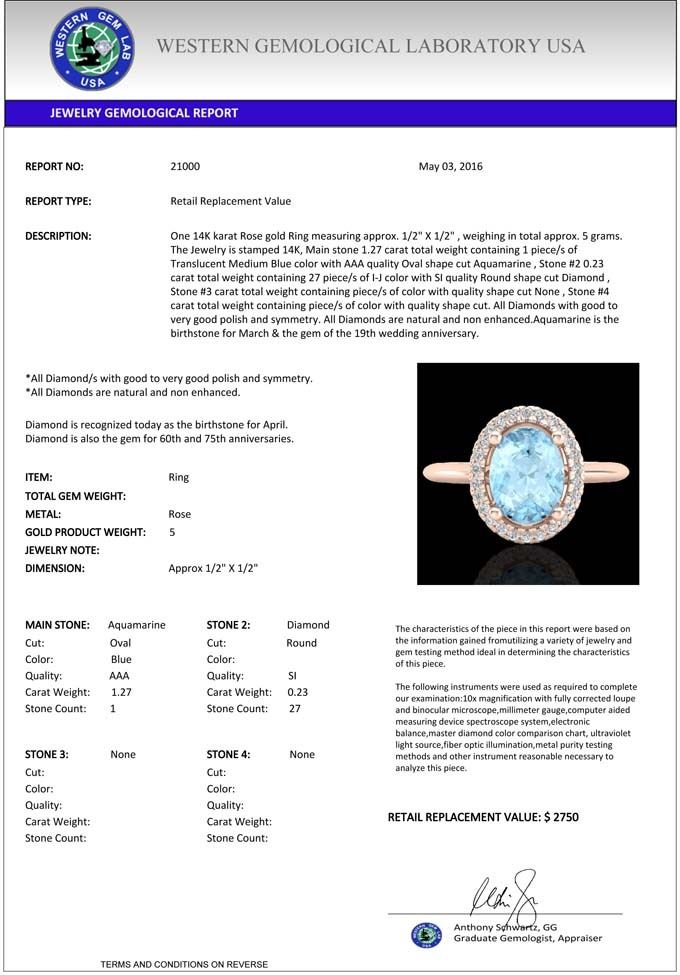 total approx. 5 grams. The Jewelry is stamped 14K, Main stone 1.27 carat total weight containing 1 piece/s of Translucent Medium Blue color with