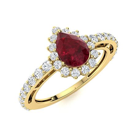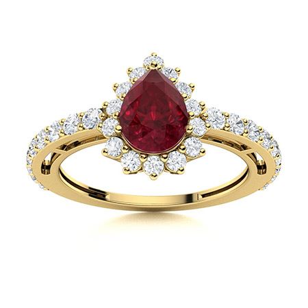 Natural 1.50 CTW Ruby & Diamond Engagement Ring 18K Yellow Gold