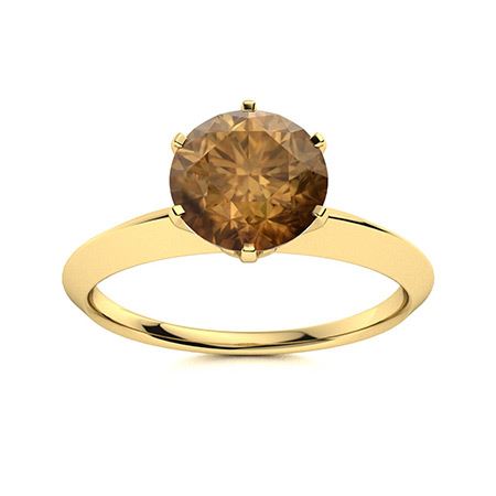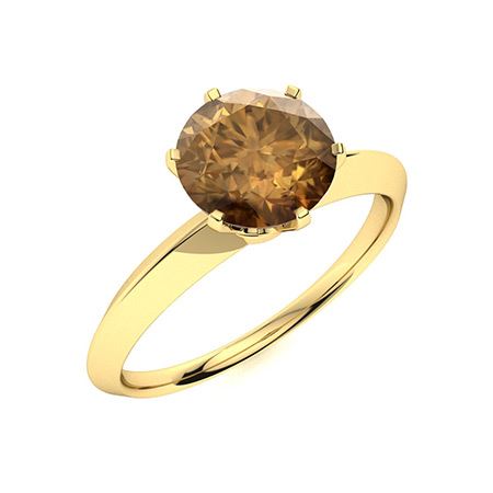 Natural 1.51 CTW Brown Diamond Solitaire Ring 14K Yellow Gold