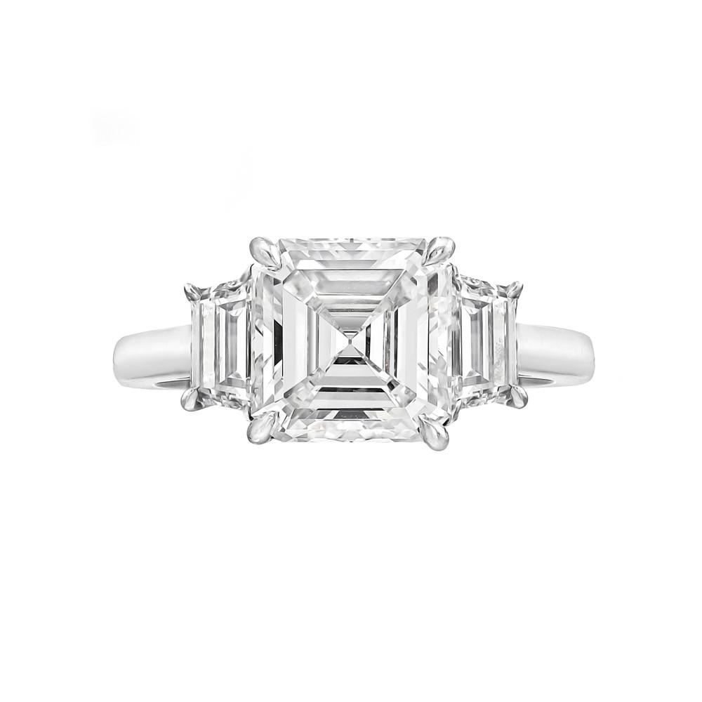 Natural 1.52 CTW 3-Stone Asscher Cut Diamond Ring 18KT White Gold