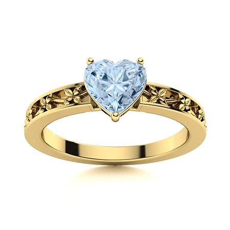 Natural 1.55 CTW Aquamarine Solitaire Ring 14K Yellow Gold