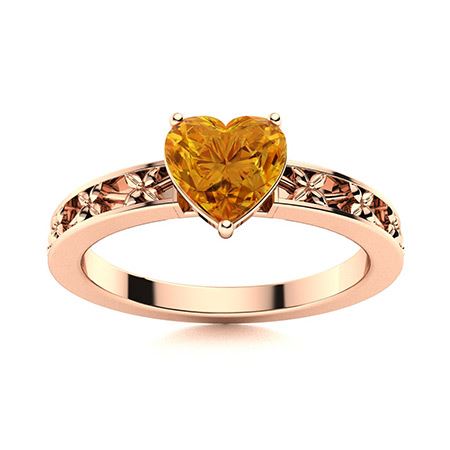 Natural 1.55 CTW Citrine Solitaire Ring 14K Rose Gold
