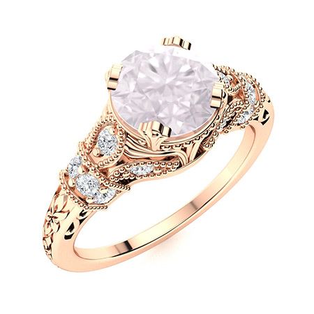 Natural 1.55 CTW Rose Quartz & Diamond Engagement Ring 14K Rose Gold